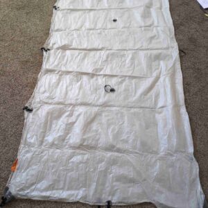 Hyperlite Mountain Gear Flat Tarp 8 x 10′ Like New means it was set up exactly once in the backyard using different guy lines. The guy lines it came with…