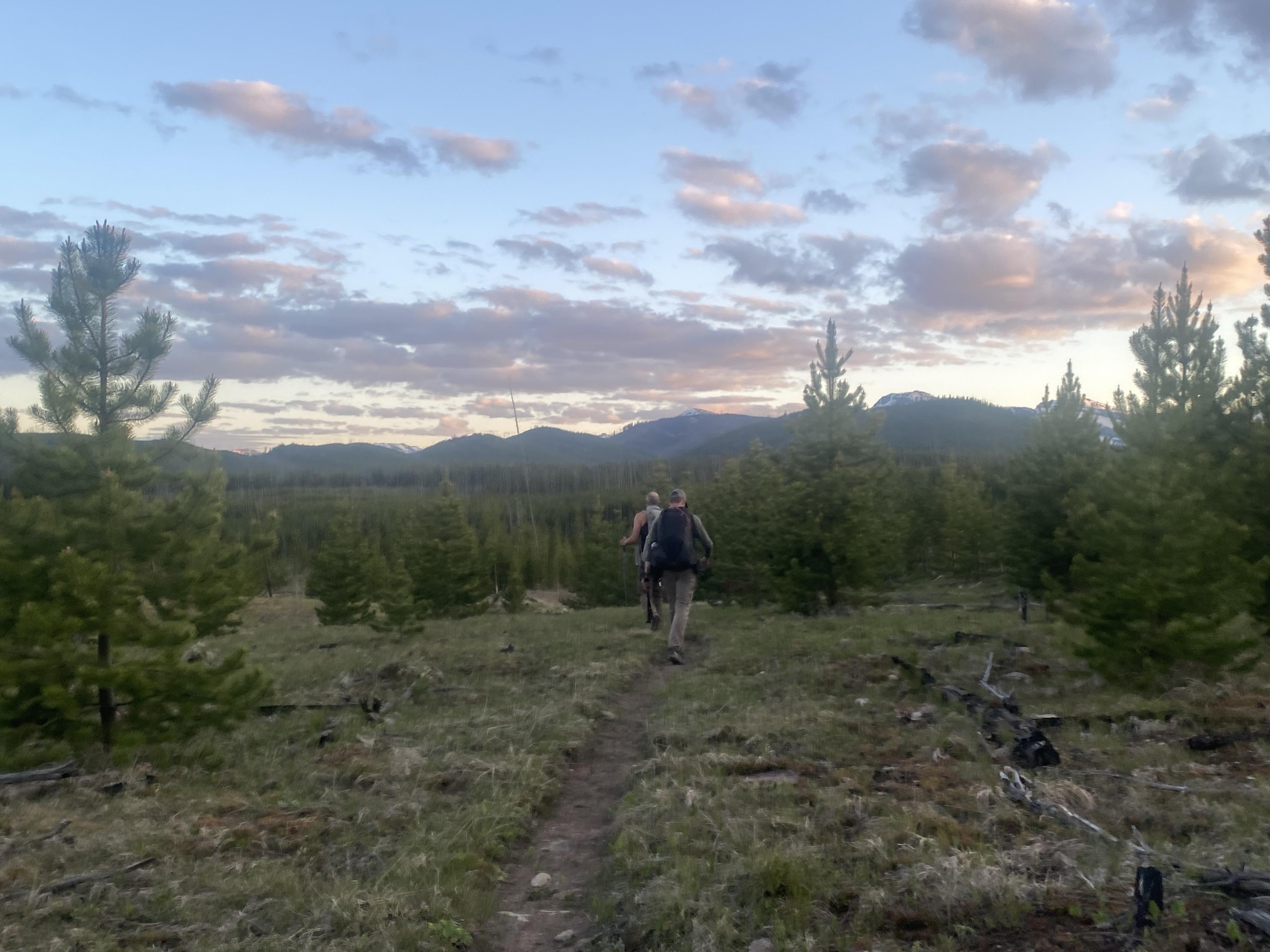 After heading off with everyone else, we were aiming for Phone creek, to then jump over into the north fork of the Teton river. However I was enjoying the scenery so much we walked a mile and some change down the south fork of Birch creek before I realized we had missed our junction. So after two *bonus* miles, we were back on track. The pass between Phone creek and the NF Teton was manageable without snowshoes, with only moderately rotten snow. Things went smoothly down the NF and up the WF of the Teton, before turning south again for the Olney/Nesbit pass. Here snowshoes might have been advantageous, because while the north side of the pass was easily approachable, the south aspect held snow for three miles from the pass down, which resulted in some continued post hole battling in the dark! We slept at the packers camp at the bottom of Nesbit the first night. The second day we trudged down Route creek, and followed the NF Sun valley south on the east side trail, before fording the river at Circle creek. I was very pleased to see that a fording stick I had left there from a few weeks earlier was still lying on the bank. We continued over into the SF sun valley on the west side and camped a bit before Pretty Prairie. The third day, feeling a bit more well-rested, we cruised up the SF sun to the packers ford, where I took an accidental plunge on the second crossing of the SF Sun. But, given that it was so warm, being soaked actually proved to be pretty enjoyable. Near Benchmark, we saw Andrew and his crew, before continuing on to the Straight creek TH. We continued the march up Straight creek, over the pass, and made it to just past Welcome creek where we spent the night. Day four and our bodies were hurtin’. So we continued the limp down the Dearborn, and crossed the continental divide on the CDT Landers fork/Blacktail creek pass. Here I opted to continue down the Landers fork drainage, instead of cutting up and over to Bighorn creek, despite it being fewer miles, because of our lack of snowshoes. The upper Landers fork, with its continuous Lodgepole regrowth, seemed to stretch on forever. So by the time we reached the east fork of the Blackfoot, we were whipped, and hobbled to just before Heart lake before calling it a day. Day five we headed out early and made it to the Indian Meadows TH, and walked the road out to the Snowbank/Sucker creek trail. Up and over we went, with only minor slide alder schwacking. And the top out on the pass proved a very classy end, as we could look down on Lincoln and the conclusion to another Open. So we stumbled down the Sucker creek trail, through some blowdown, to the road, and walked the remaining four miles to the ranger station!
