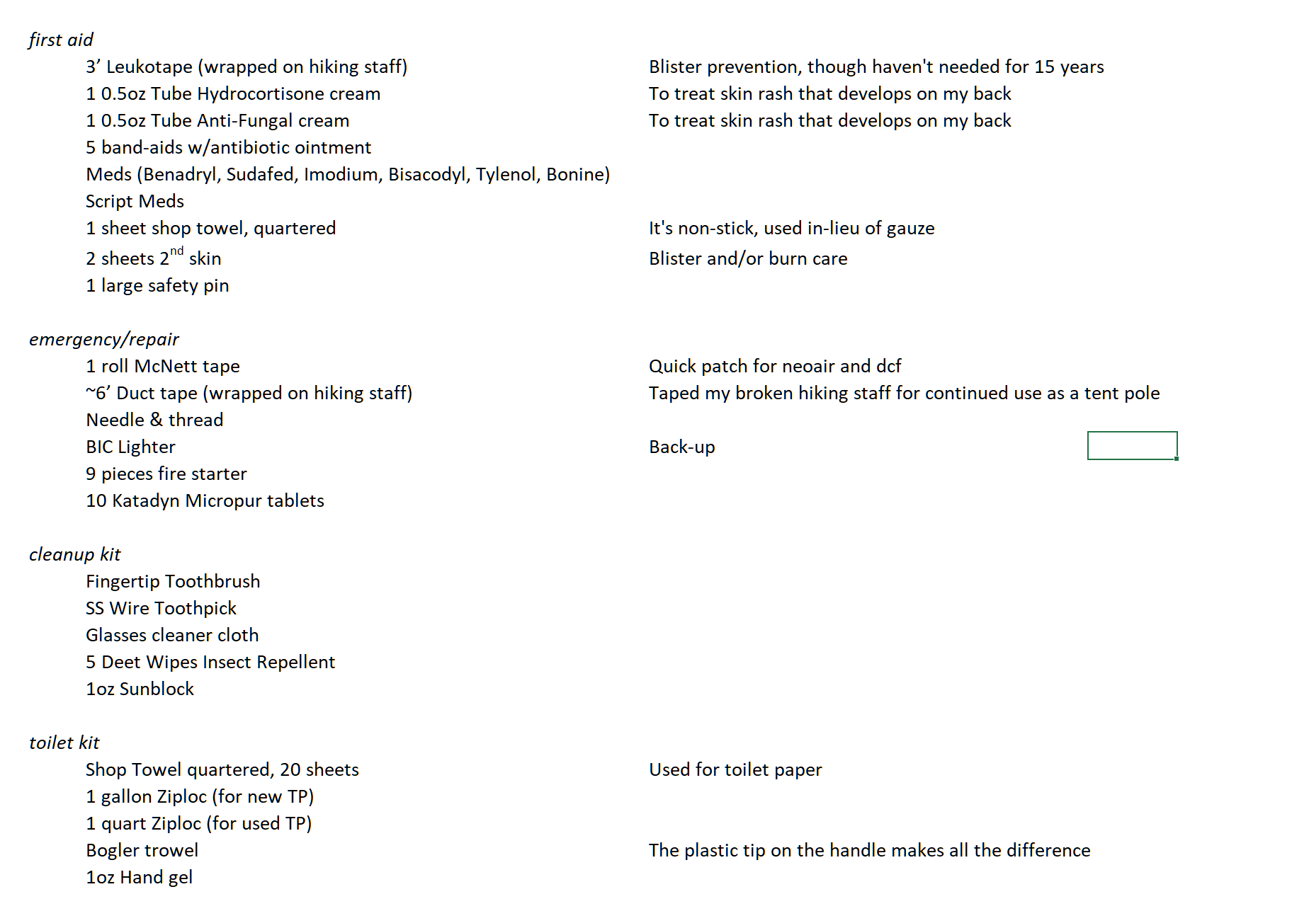 Trip Month (08) – AugustGear List