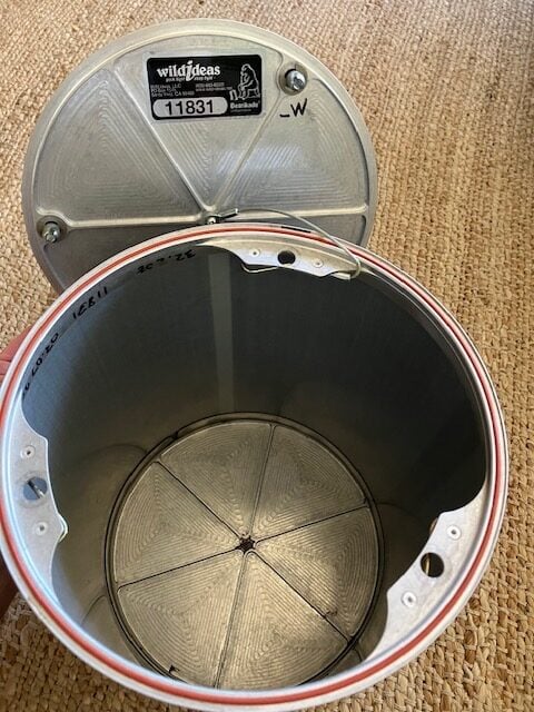 Good condition, 8/10, with some normal scuff marks but no major signs of wear. The lid stays on securely when tightened. Has sharpie marks to line up the main closure point on the outside and inside.