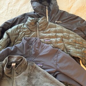 4 Patagonia Jackets, all worn about 5 times, all are in excellent condition with little to no wear, some are new. I live in San Diego and it goes 3-5…