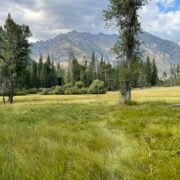 Gallats Lake, the largest, is an expanse of grass that moves in waves. I pause to soak in the soothing rhythm and rest before the 2,000-foot climb up Colby Pass. Clouds are filling the sky and I hear thunder in the distance, so I make haste on the climb.