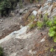 About 3.5 miles in, the trail is washed out. A flow of gray mud has taken out about 20-30’ of trail. The water likewise runs gray. I presume this is ash from an earlier fire.