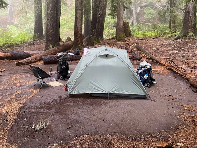 Our neighbors did not fair so well in their single wall 2 person and 1 person dynema tents. They were bailing water from inside the tents. Zbags totally soaked. I won’t mention the brand; it’s a great company we’ve all bought from and love. One might say their pitch was wrong or improper ground position. That might be true, and we agree they’re great light weight shelters but not capable to weather the kind of extraordinary event we experienced. The following three days of PNW drizzle, fog, high humidity they struggled, as we all did, to dry out. As a consequence the storm contaminated the water supply at Paradise leading to a shutdown of drinking water, toilet usage, and food service.